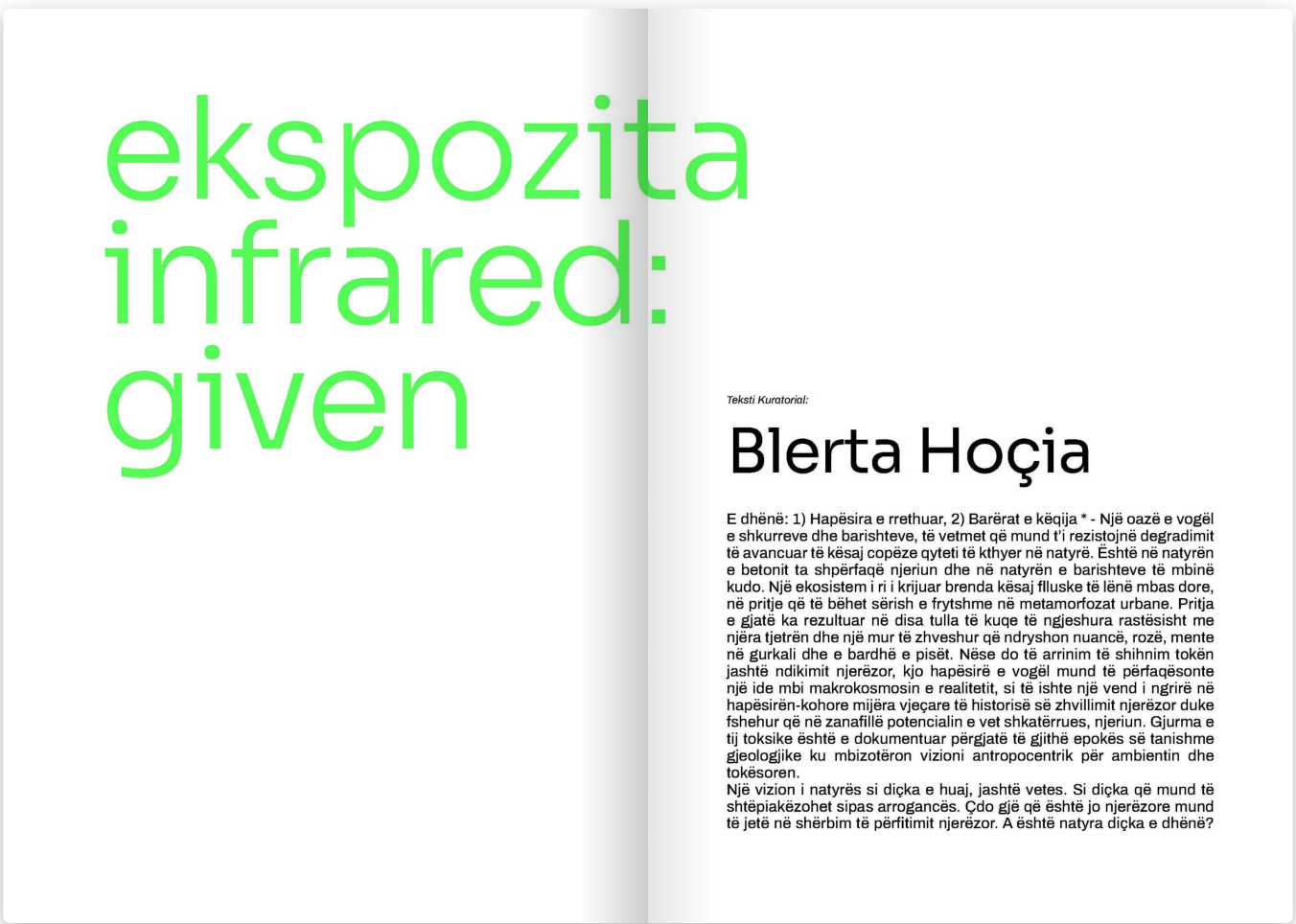 Në edicionin e dytë të INFRARED u trajtuan tema që kanë të bëjnë me çështjet emergjente të ambientit. Në katalog janë të përmbledhura dhe prezantuara punët e tetë artistëve/eve që ishin pjesë e Rezidencës së Artit dhe Ekspozitës Given. Ndotja e ajrit, plastika, mbipopullimi, prerja e pyjeve, hidrocentralet dhe ndikimi i tyre në lumenj dhe pozicionimi dominues i njeriut karshi natyrës, janë disa prej temave që u trajtuan artistikisht në mediume të ndryshme për ekspozitën Given.