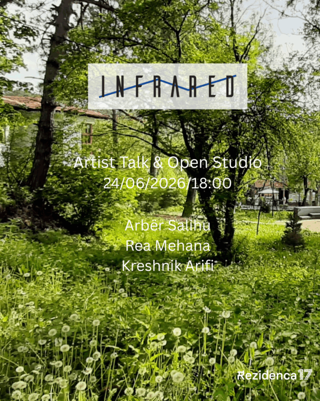 June 24, 2025 @ 6:00 pm – 9:00 pm – Arbër Salihu, Rea Mehana dhe Kreshnik Arifi janë tre përfituesit e Rezidencës INFRARED për vitin 2025, të cilët do të prezantojnë projektet e tyre përmes instalacioneve, hulumtimeve artistike dhe diskutimeve, me datën 24 qershor nga ora 18:00. / Arbër Salihu, Rea Mehana, and Kreshnik Arifi are the three selected artists of the INFRARED Residency 2025, […]